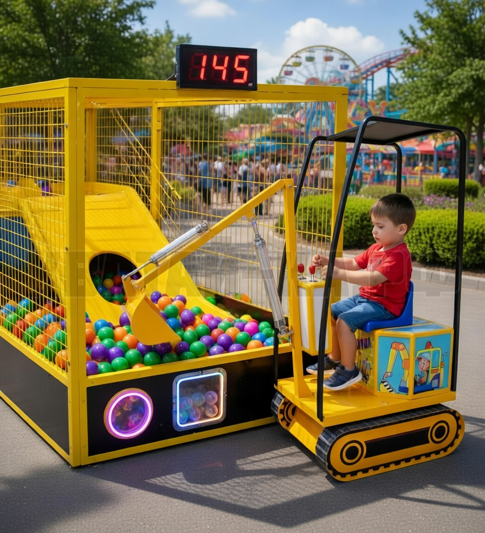 Аттракцион представляет собой мини-копию настоящего Экскаватора где выполняются реалистичные движения.