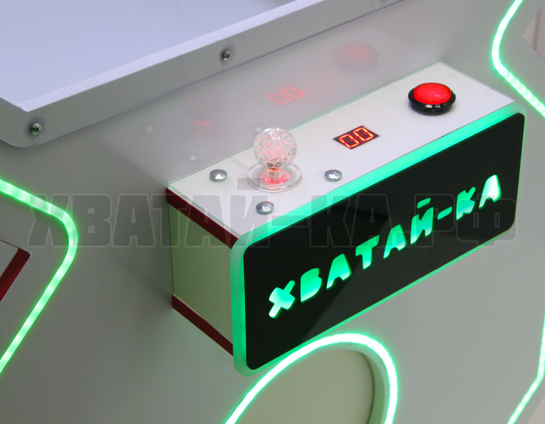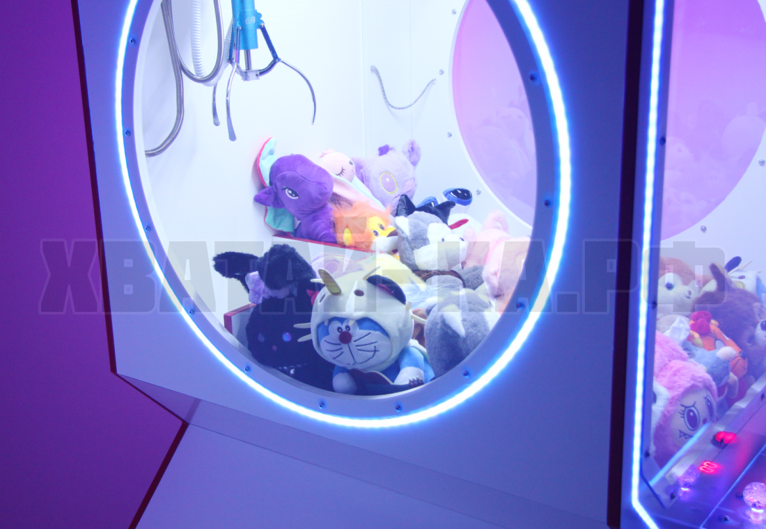 Управляя джойстиком надо навезти клешню над понравившиеся игрушкой и нажать кнопку.