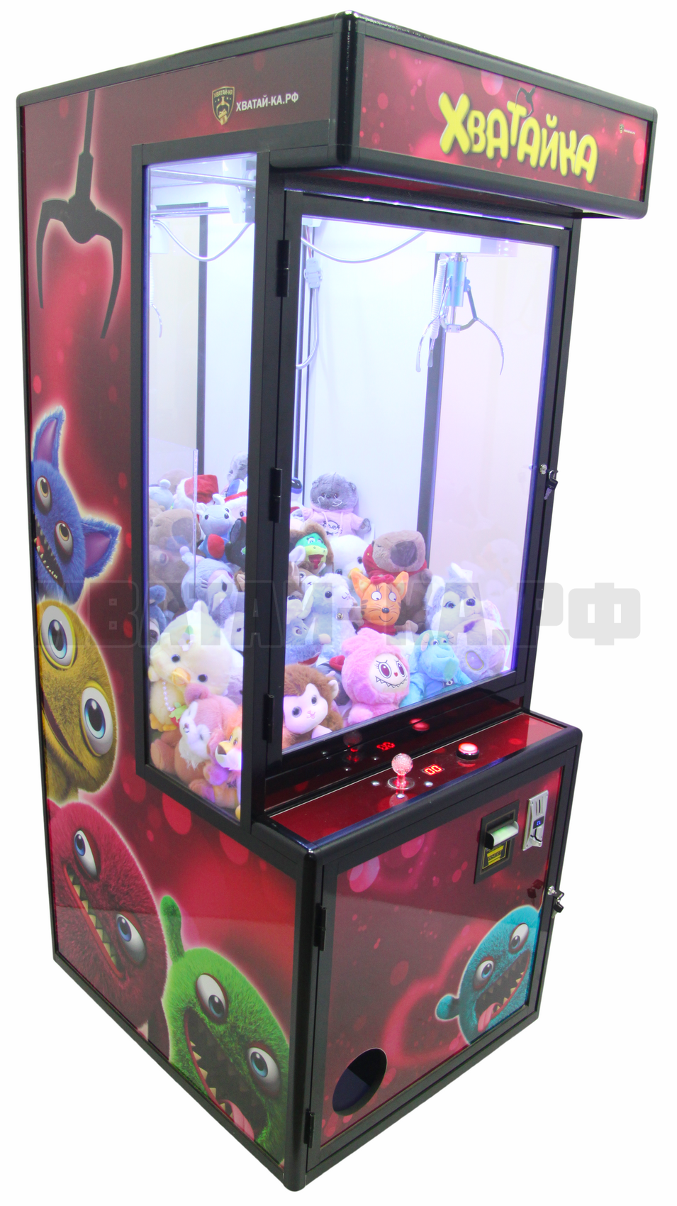 В аппарате установлена программа, которая генерирует выигрыш и в случайном порядке отпускает игрушку в нижней части, при подъёме, в самом верху.