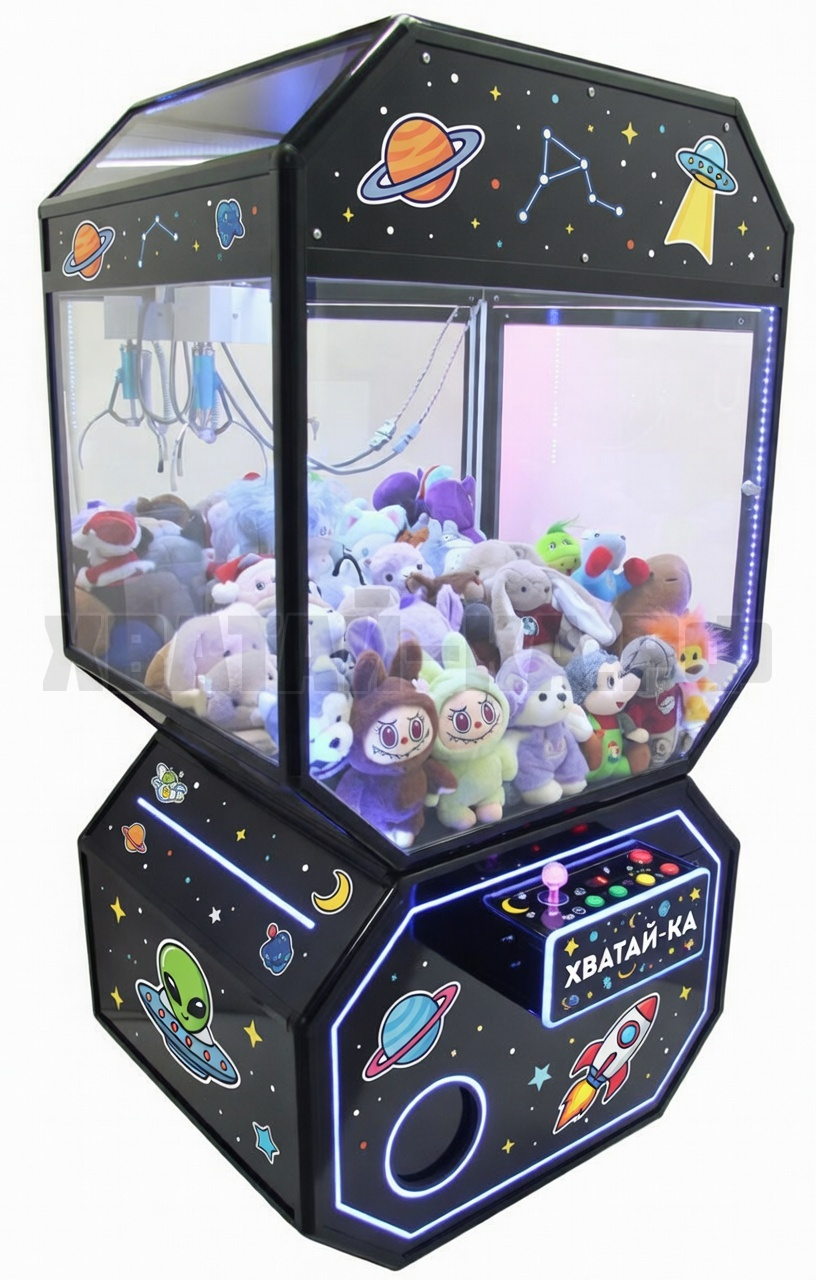 В аппарате установлена программа, которая генерирует выигрыш и в случайном порядке отпускает игрушку в нижней части, при подъёме, в самом верху.