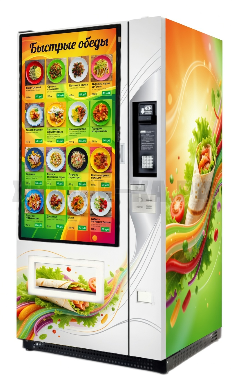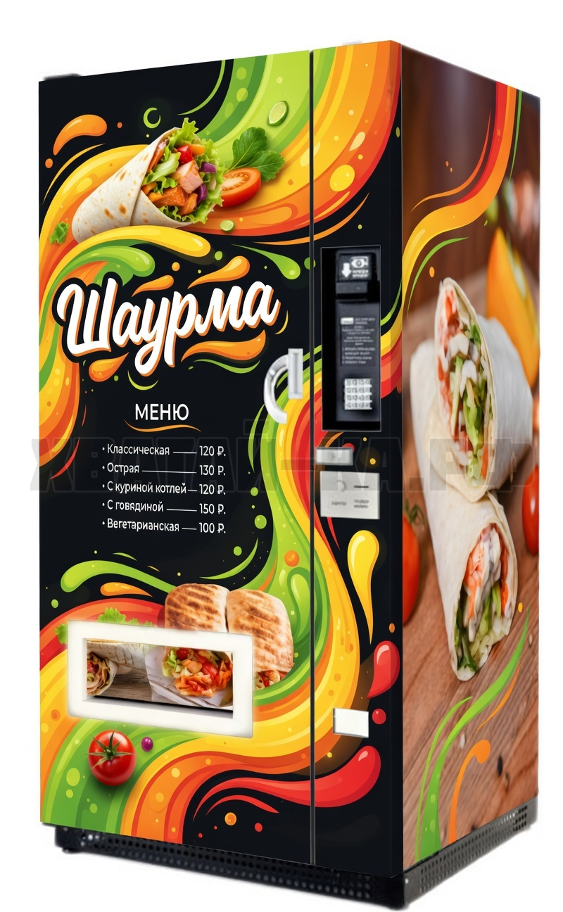 Аппарат выдает шаурму из морозильника прошедшая шоковую заморозку.
