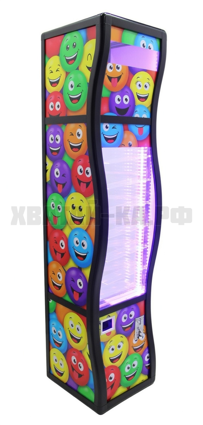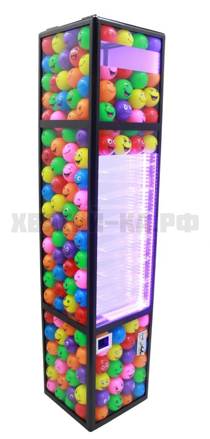 Аппарат имеет основную особенность – развлекает перед продажей: мячик выкатывается по красивому скату, тем самым делая покупку необычной и веселой!